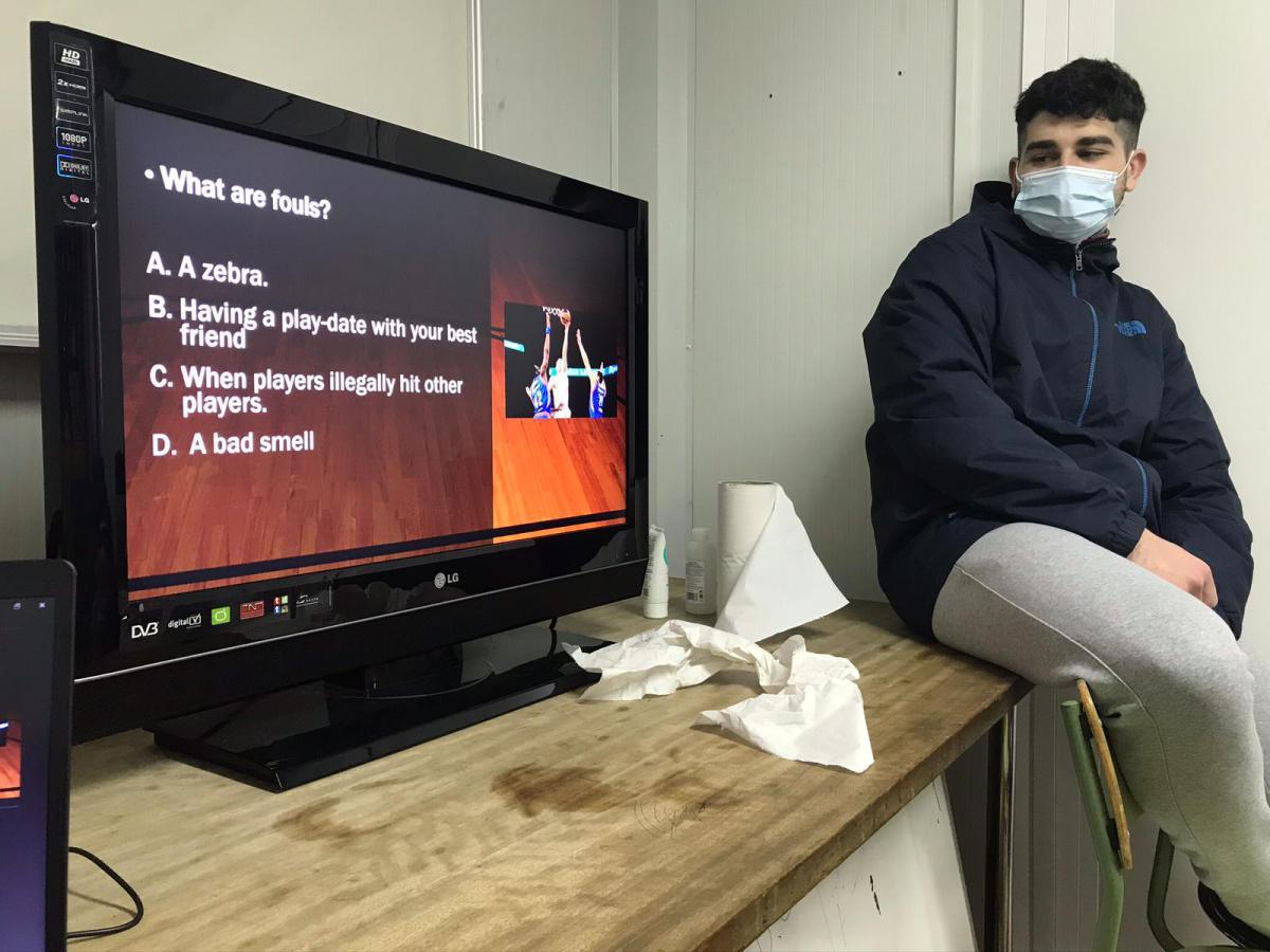 Más resguardados si cabe por el intenso frío, con almuerzo caliente, hubo tiempo para otro desafío de "Basket-english" con la teacher Teresa, acompañada en la foto por los vencedores de la prueba, Laura, Adriana y Diego Aragoneses. Aunque ya os lo hemos contado, nos ha gustado y parecido una buena experiencia, acogida con entusiasmo por nuestros players.